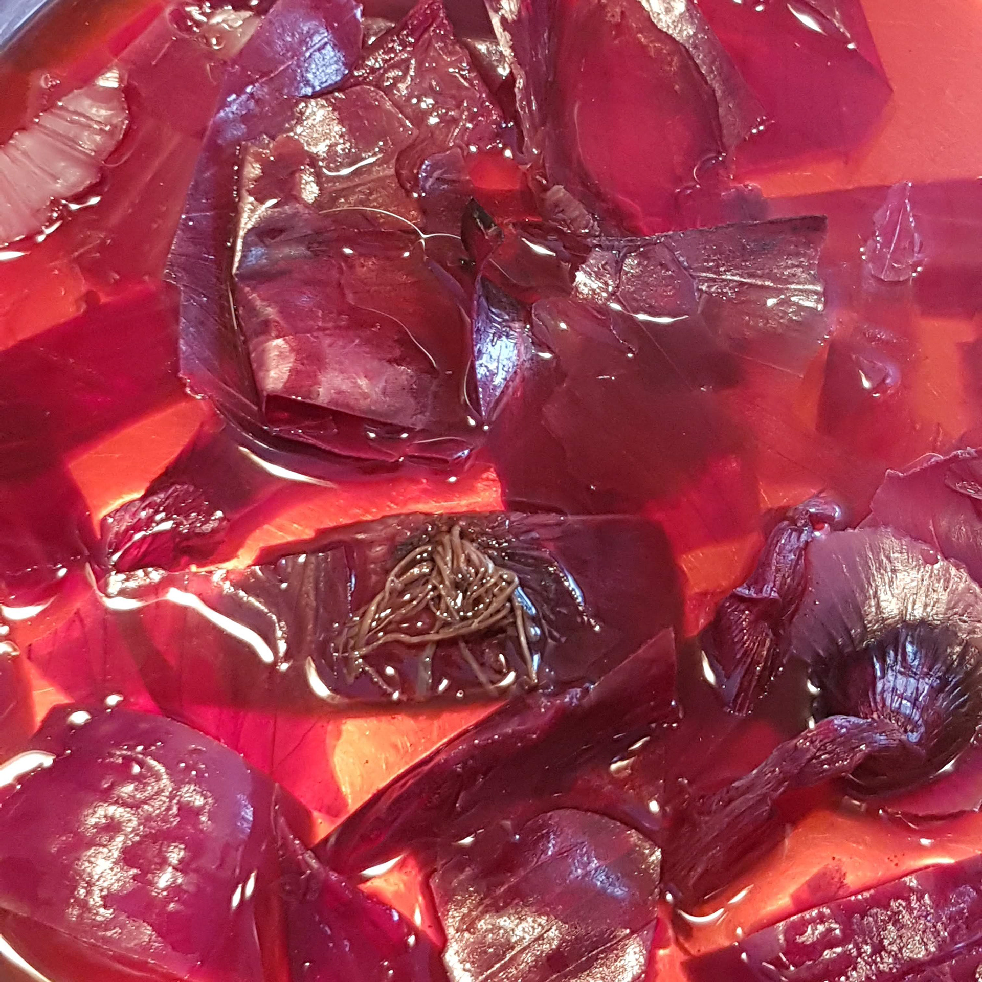 I experimented with creating colour from food stuffs when the first lockdown prevented me from using the colleges dye lab. The strength and breadth of colours I was able to produce was astonishing and I used these bright, happy colours to build my final palette for this project.